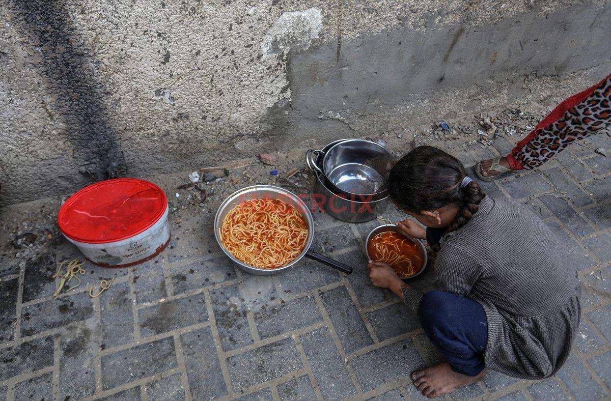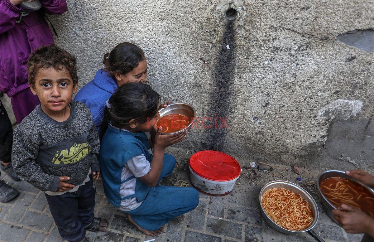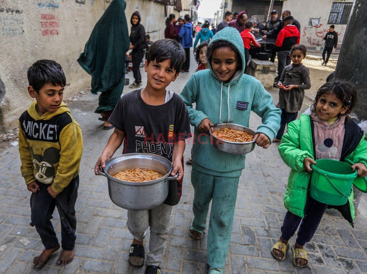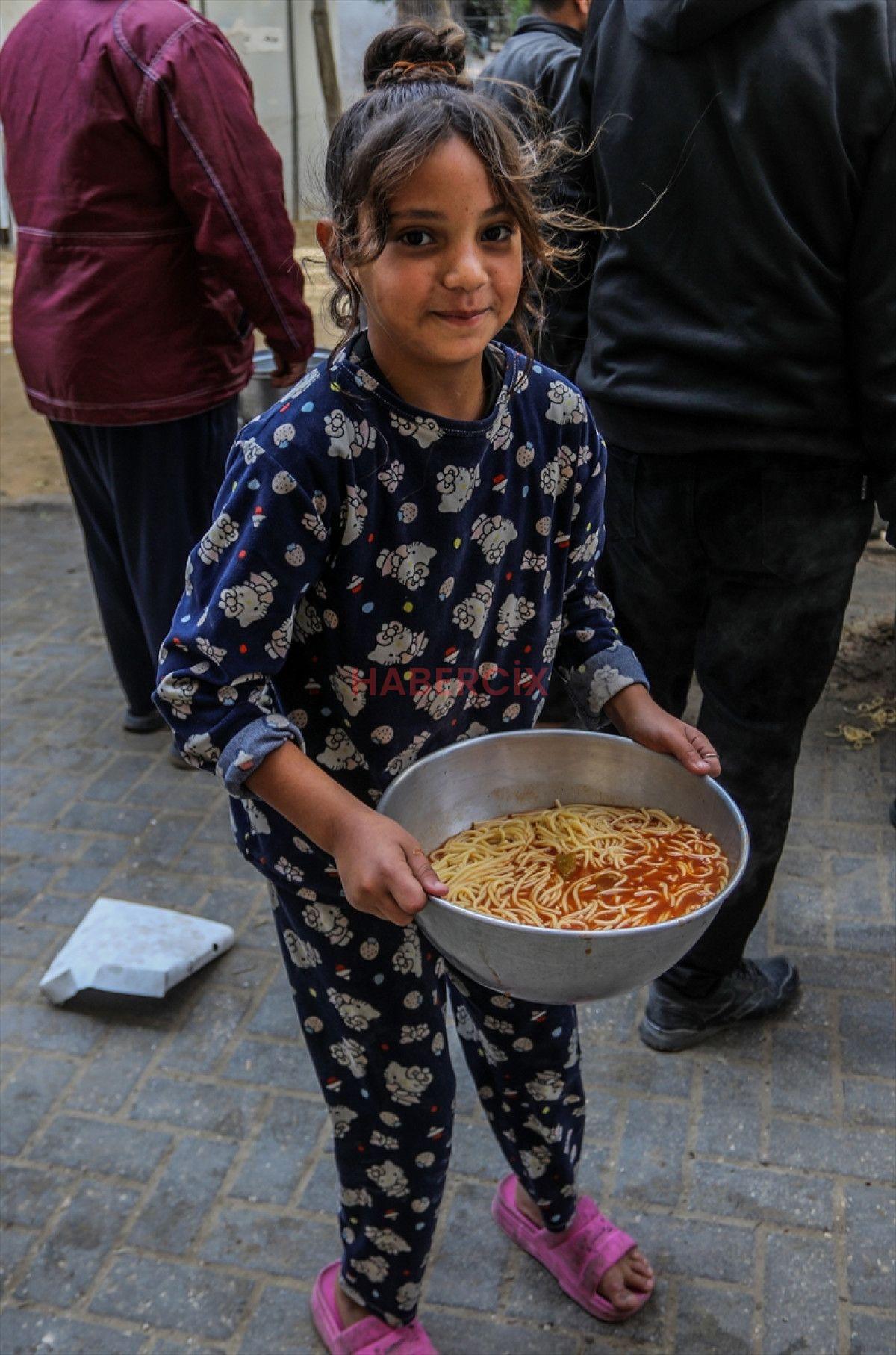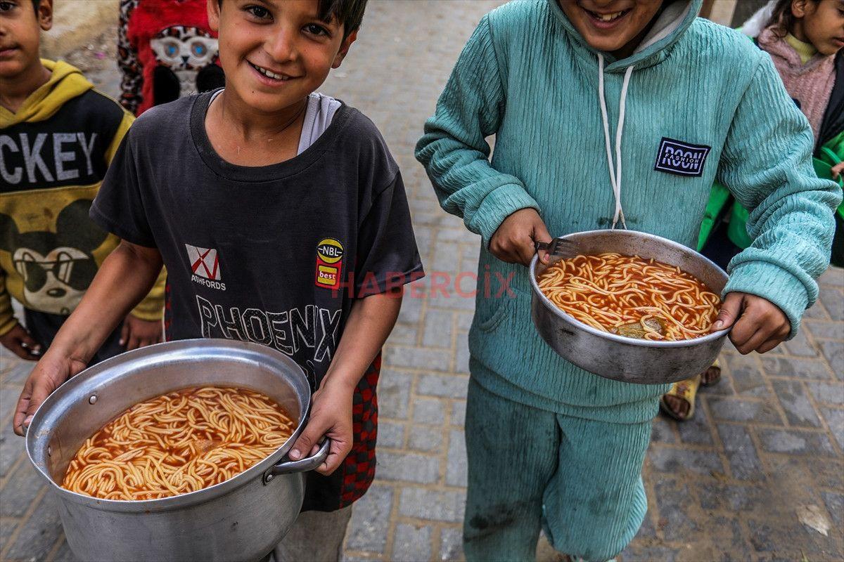 Gazze Şeridi’nin güneyinde bulunan Han Yunus kentindeki el-Mevasi bölgesinde, bir hayır kurumu tarafından İsrail taarruzları sonucu yerinden edilmiş Filistinlilere sıcak yemek dağıtımı yapıldı.