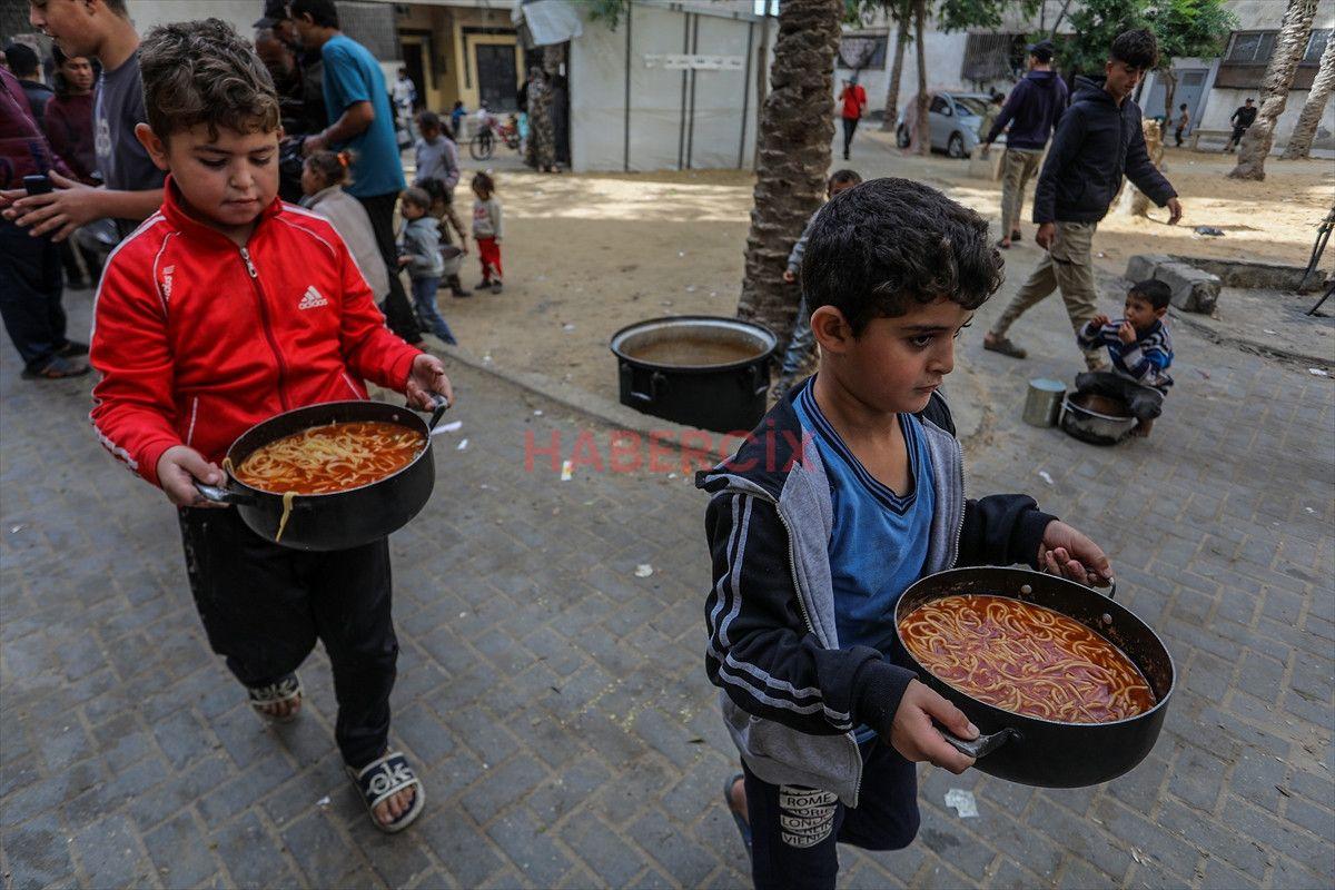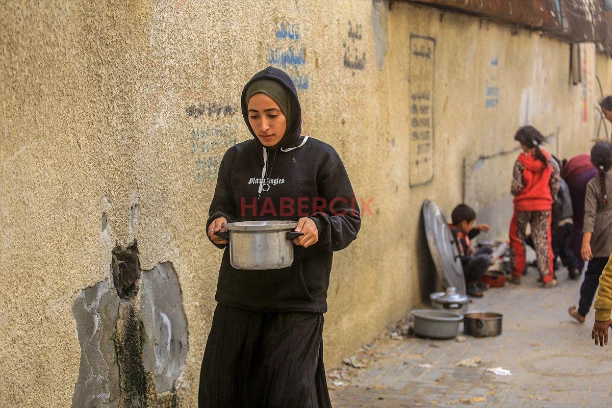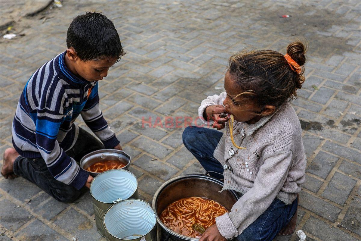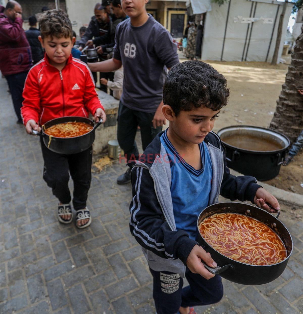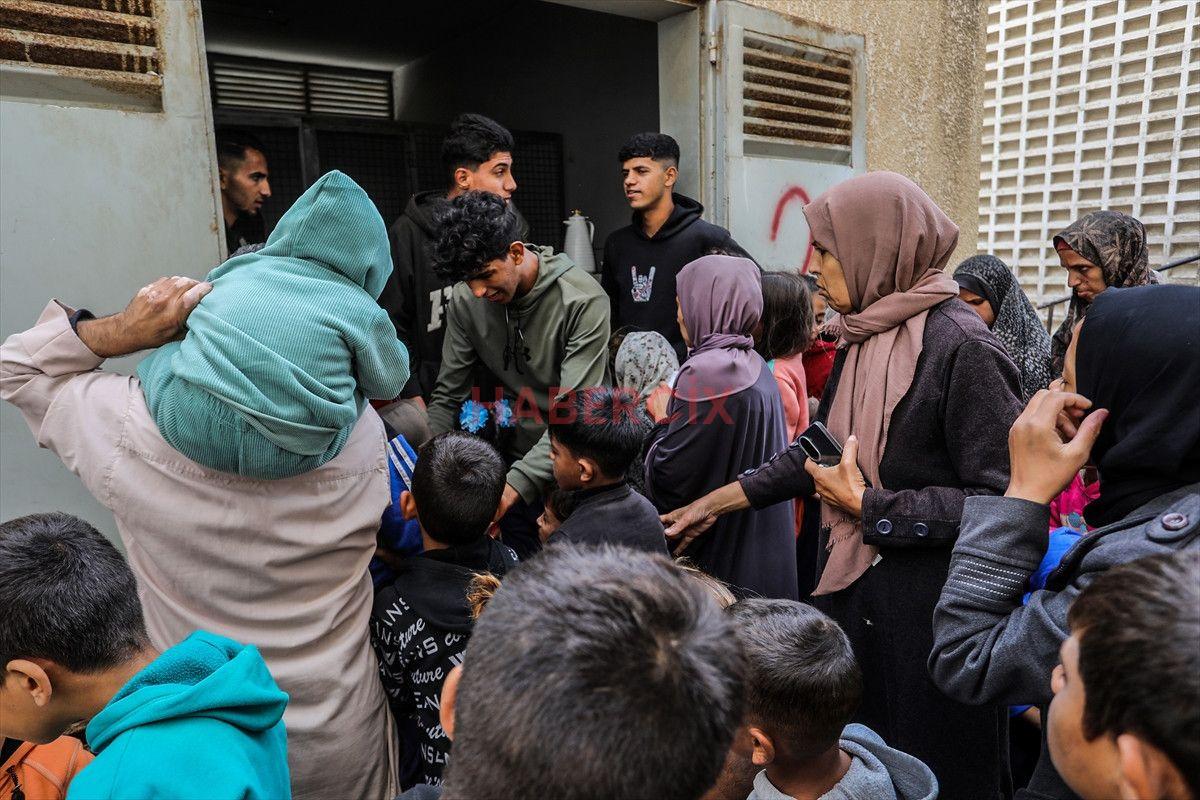 Gazze Şeridi’nin güneyinde bulunan Han Yunus kentindeki el-Mevasi bölgesinde, bir hayır kurumu tarafından İsrail taarruzları sonucu yerinden edilmiş Filistinlilere sıcak yemek dağıtımı yapıldı.