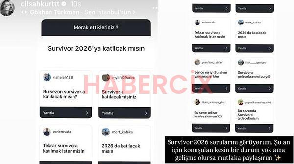Henüz kesin bir durum olmadığını söyleyen Dilşah, bir gelişme olması durumunda paylaşacağının da müjdesini verdi. Başka bir paylaşımında ise Survivor’ı özlediğini dile getirerek yarışmaya yeşil ışık yaktı.