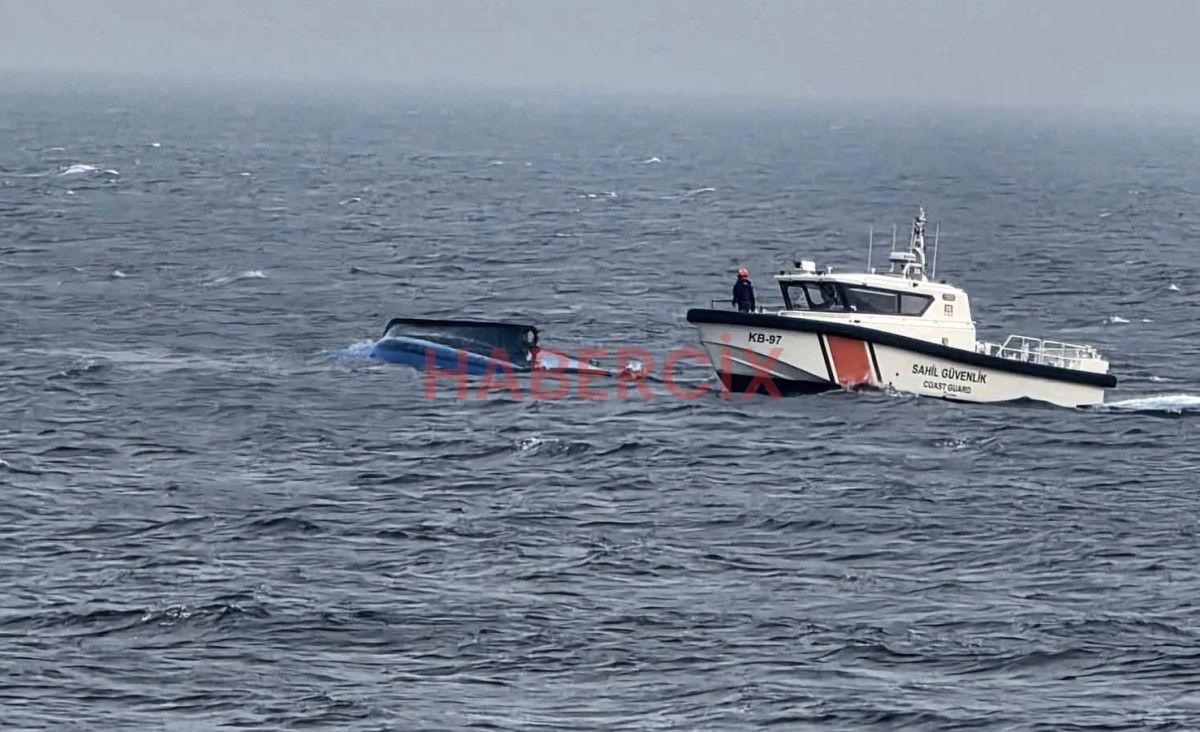 Ekiplerin tekneyi kıyıya çekme çalışmaları sırasında tekne alabora oldu.