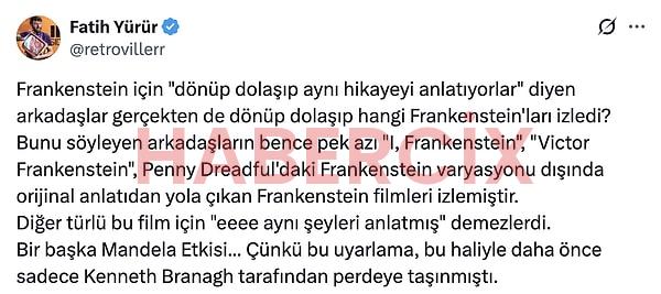 Kısa sürede büyük bir izleyiciye ulaşan Frankenstein, ilk izlenimlere göre izleyiciden tam not almayı başardı. Frankenstein’in yeni versiyonunu izlediğimiz bu film eleştirmenlerin de favorilerinden biri oldu.