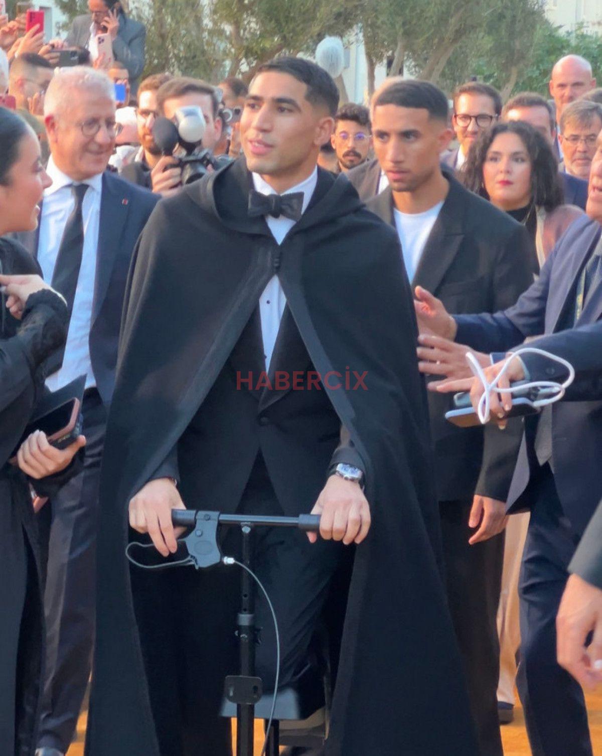 Yaklaşık 6-8 hafta alanlardan uzak kalacağı açıklanan Hakimi, ödül merasiminde scooter ile görüldü.