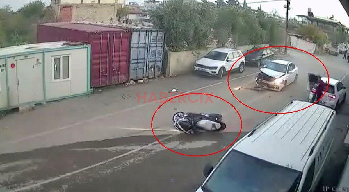 Seyir halinde ilerleyen A.S. yönetimindeki 31 AUU 779 plakalı araba, sokak kesişiminde H.Y. idaresindeki 31 AOD 195 plakalı motosikletle çarpıştı.