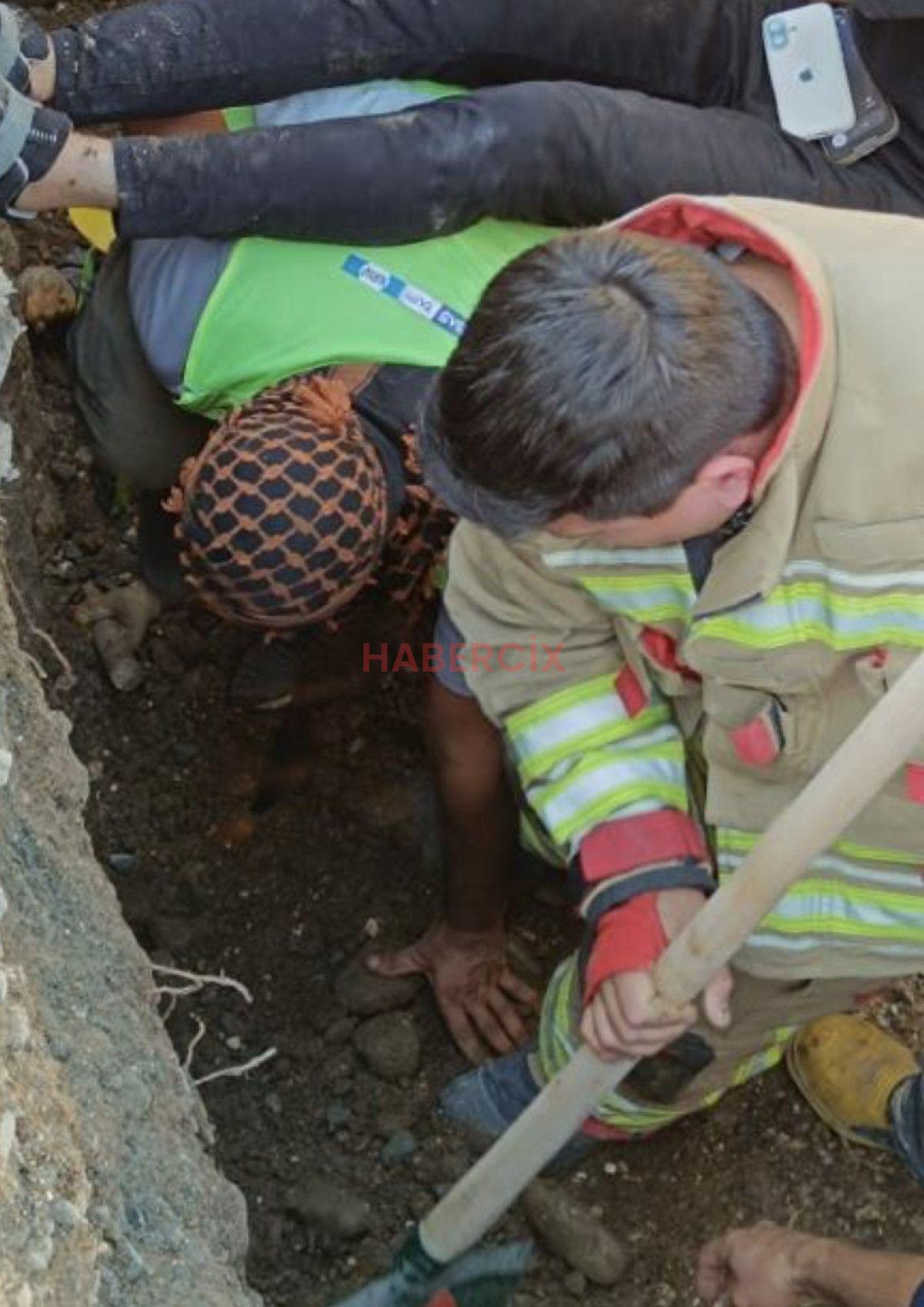 Yaralı personel, toprak yığınının altından itfaiye takımları tarafından kurtarıldı.