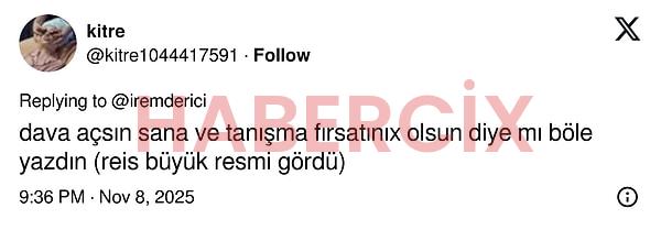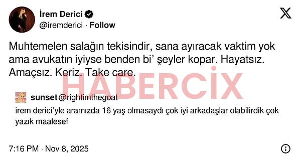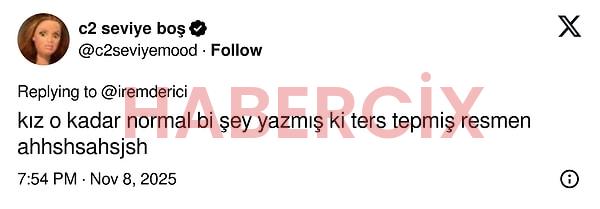 Fakat tweet İrem Derici’nin aksi bir anına denk gelmiş olacak ki, kendisinden beklenmedik bir reaksiyon geldi.
