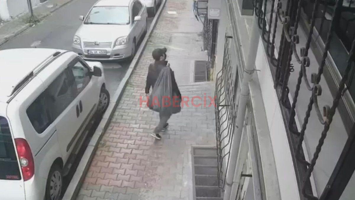 İstanbul’un Gaziosmanpaşa ilçesi Merkez Mahallesi’nde elindeki siyah poşetle apartmanlara giren kuşkulu, katları tek tek dolaşarak daire önlerindeki çok sayıda ayakkabıyı poşete doldurarak çaldı.