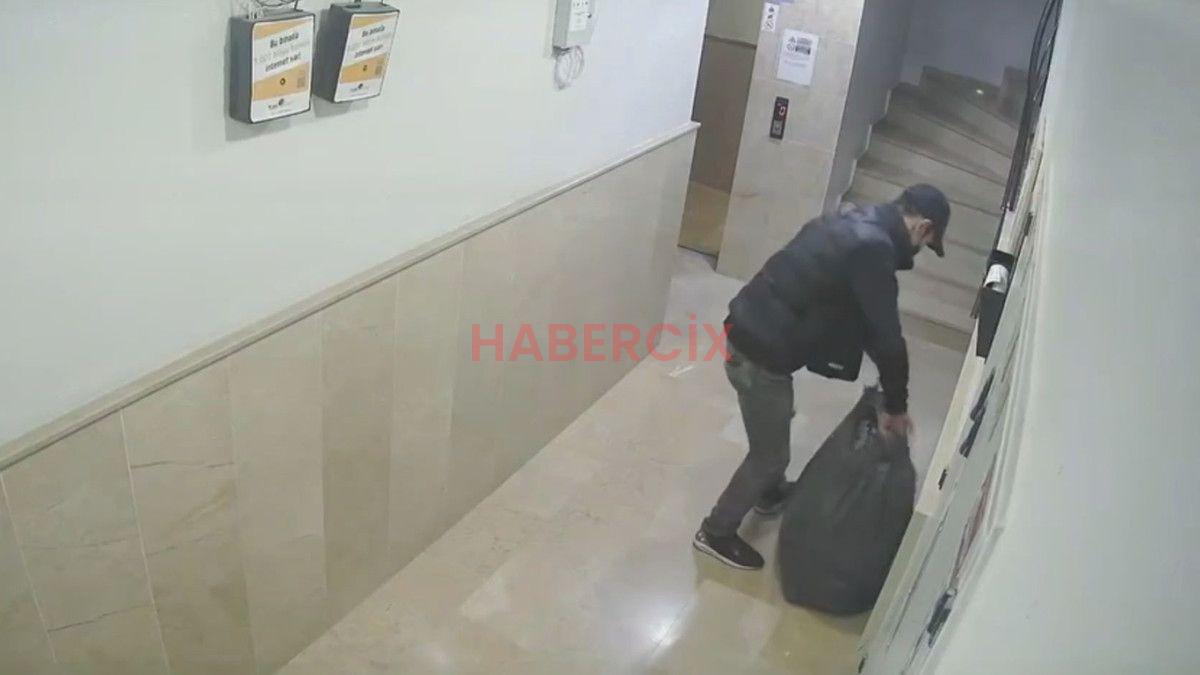 Görüntülerde şüphelinin apartmandaki ayakkabıları çalarak elindeki siyah poşete doldurduğu anlar yer aldı.