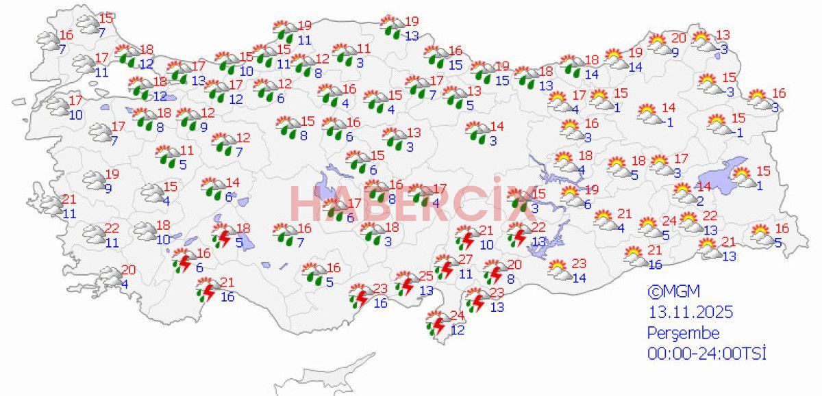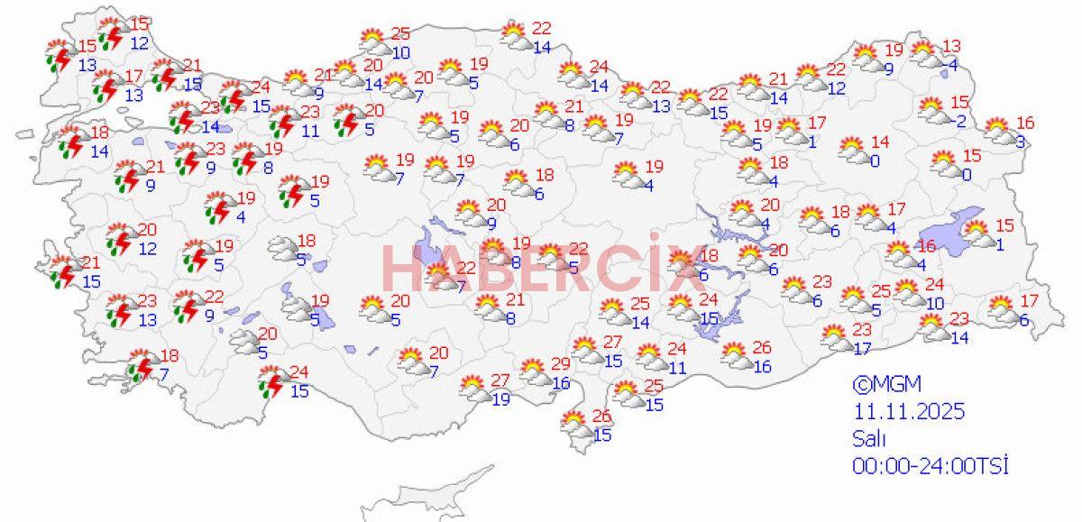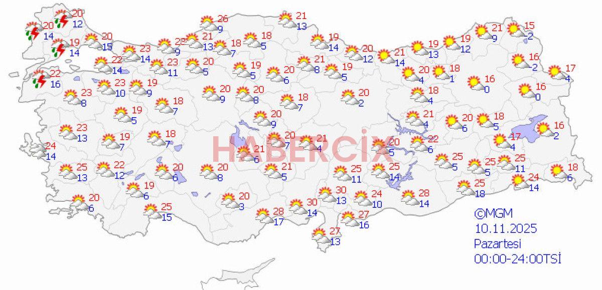 Salı günü İstanbul ve etraf vilayetlerinde gök gürültülü sağanak yağış bekleniyor.