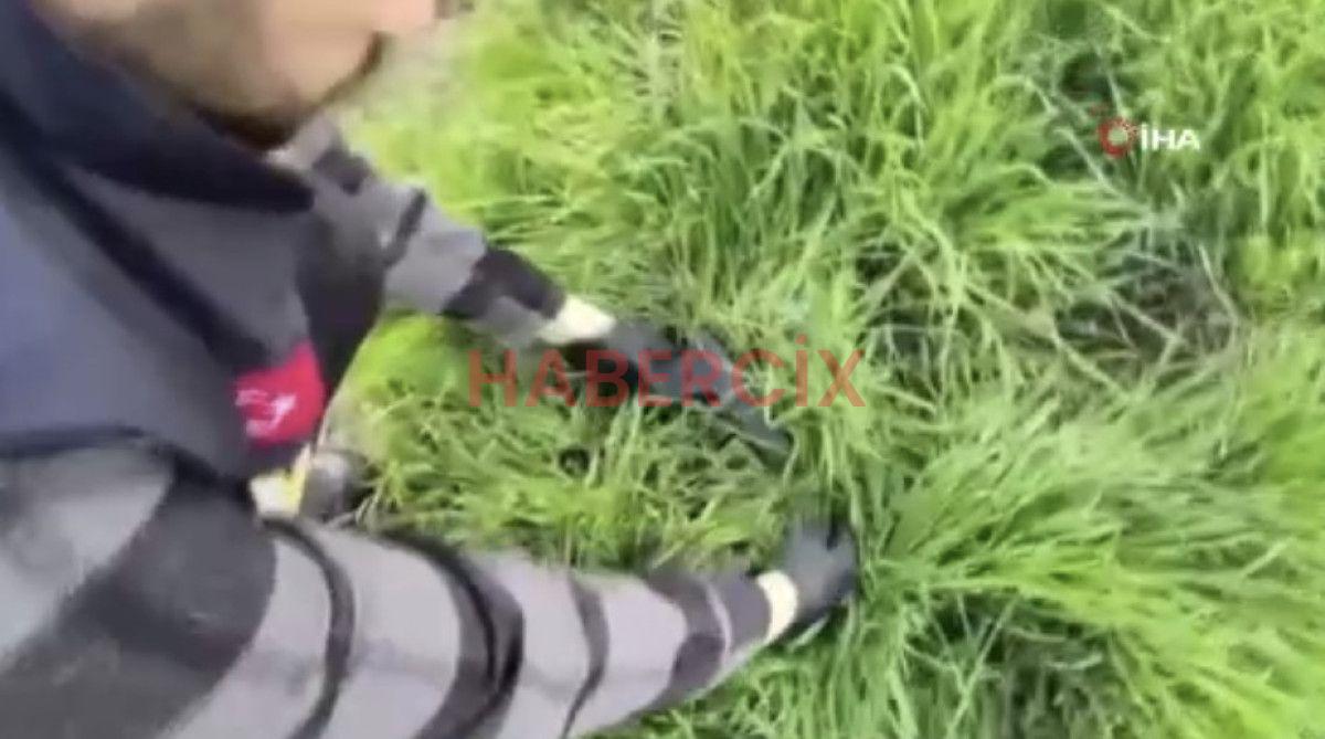 Edirne'de korkutan anlar...Merkeze bağlı Büyükdöllük köyü merasında mantar toplamaya çıkan Serdar Çayan, patlamamış bir top...
