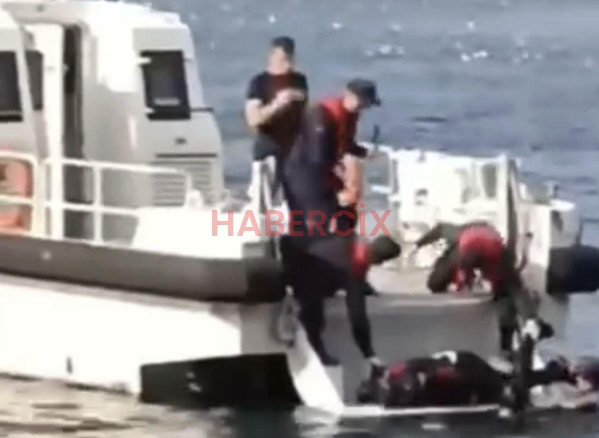 Ekipler tarafından sudan çıkarılan ceset Kıyı Güvenlik teknesine alındı.