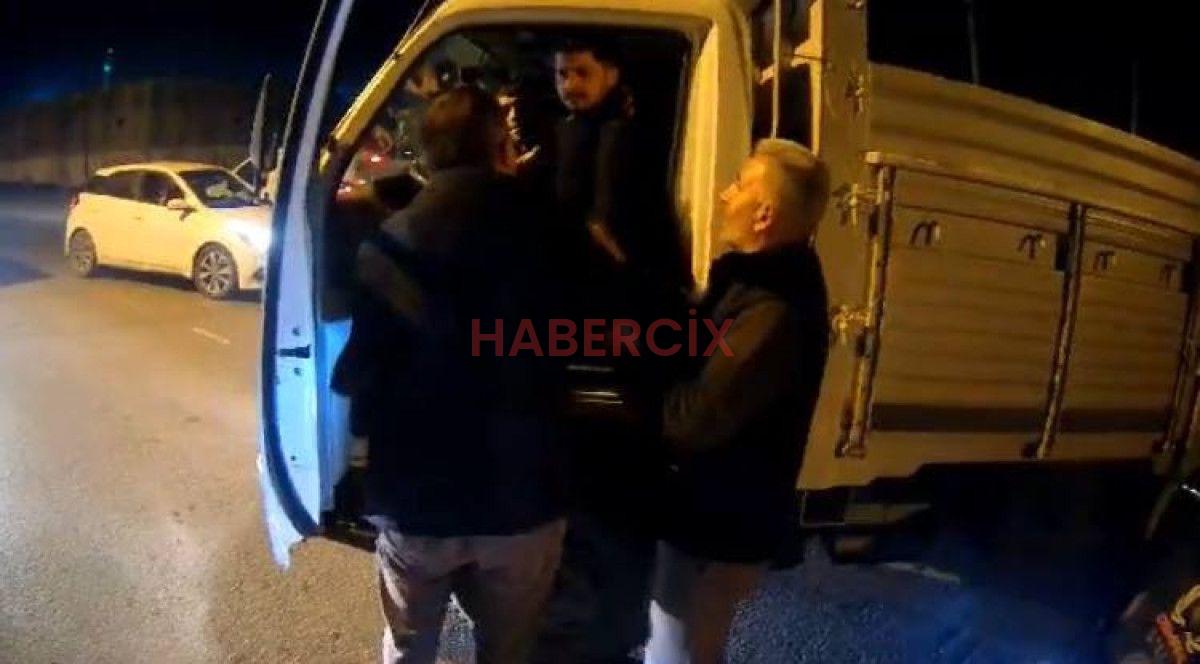 Çevredekilerin ortaya girmesiyle hengame son buldu lakin kamyonet sürücüsü arbedeyi ayıranlara yönelik de hakaretlerine devam etti.