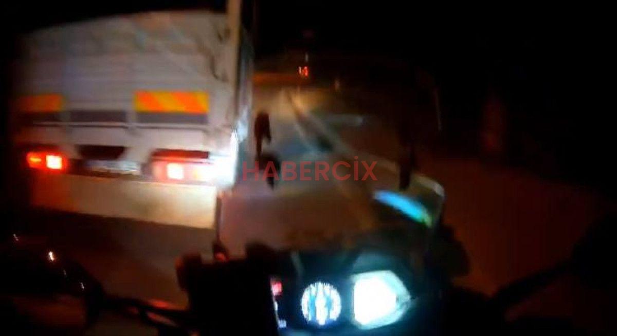İddiaya nazaran, motosikleti ile ilerleyen Yasin A., gerisinden gelen kamyonetin çarpmasından son anda hareket yaparak kurtuldu.