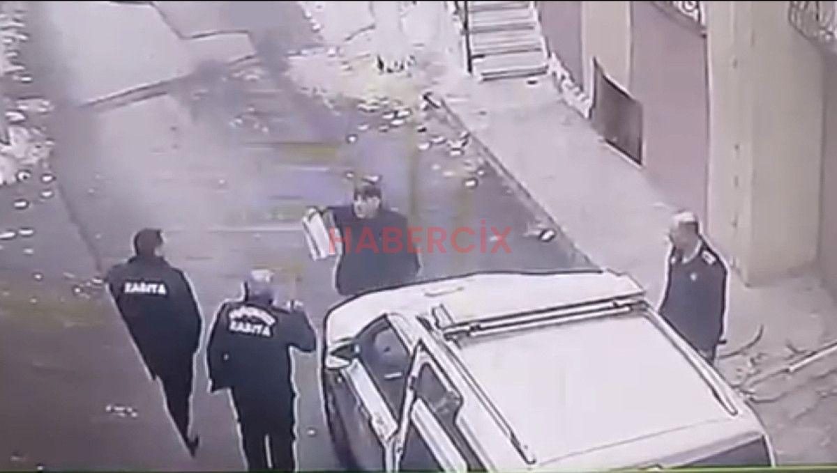 Yaşanan arbede etraftaki bir binanın güvenlik kamerasına yansıdı.