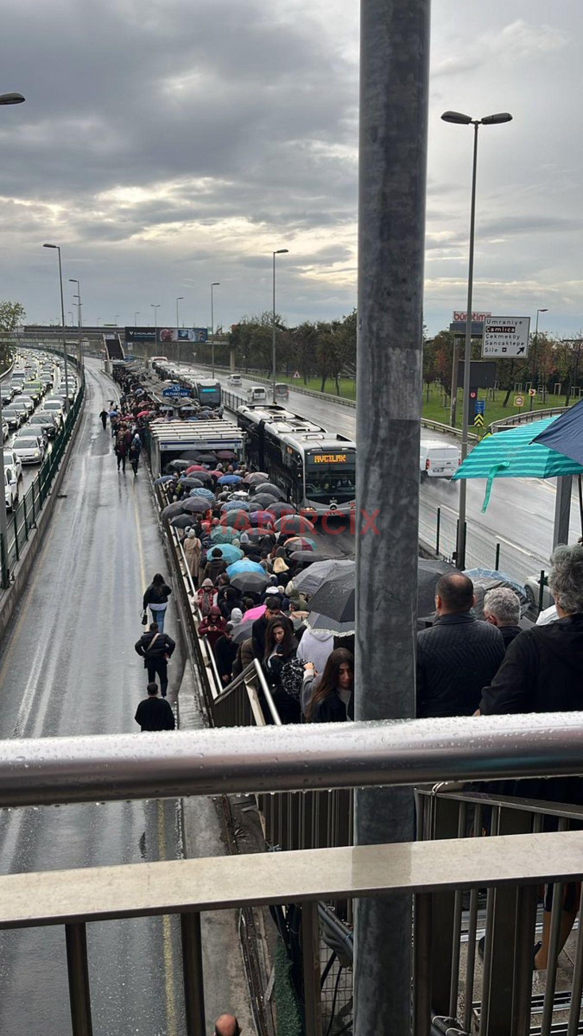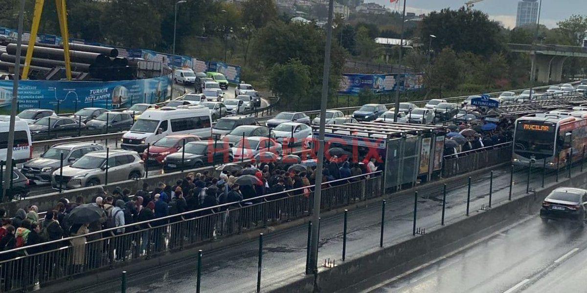 Yolcular ve vatandaşlar büyük panik yaşadı. Bölgede ağır metrobüs kuyruğu oluştu.