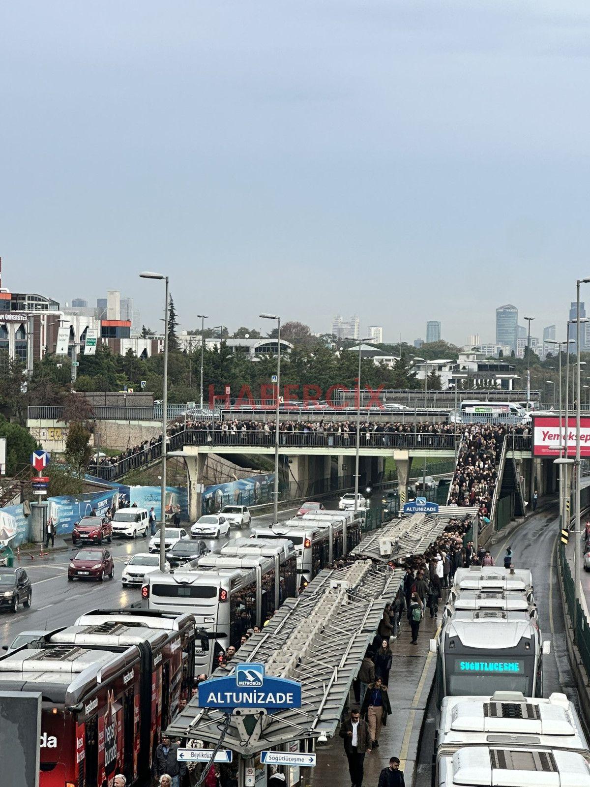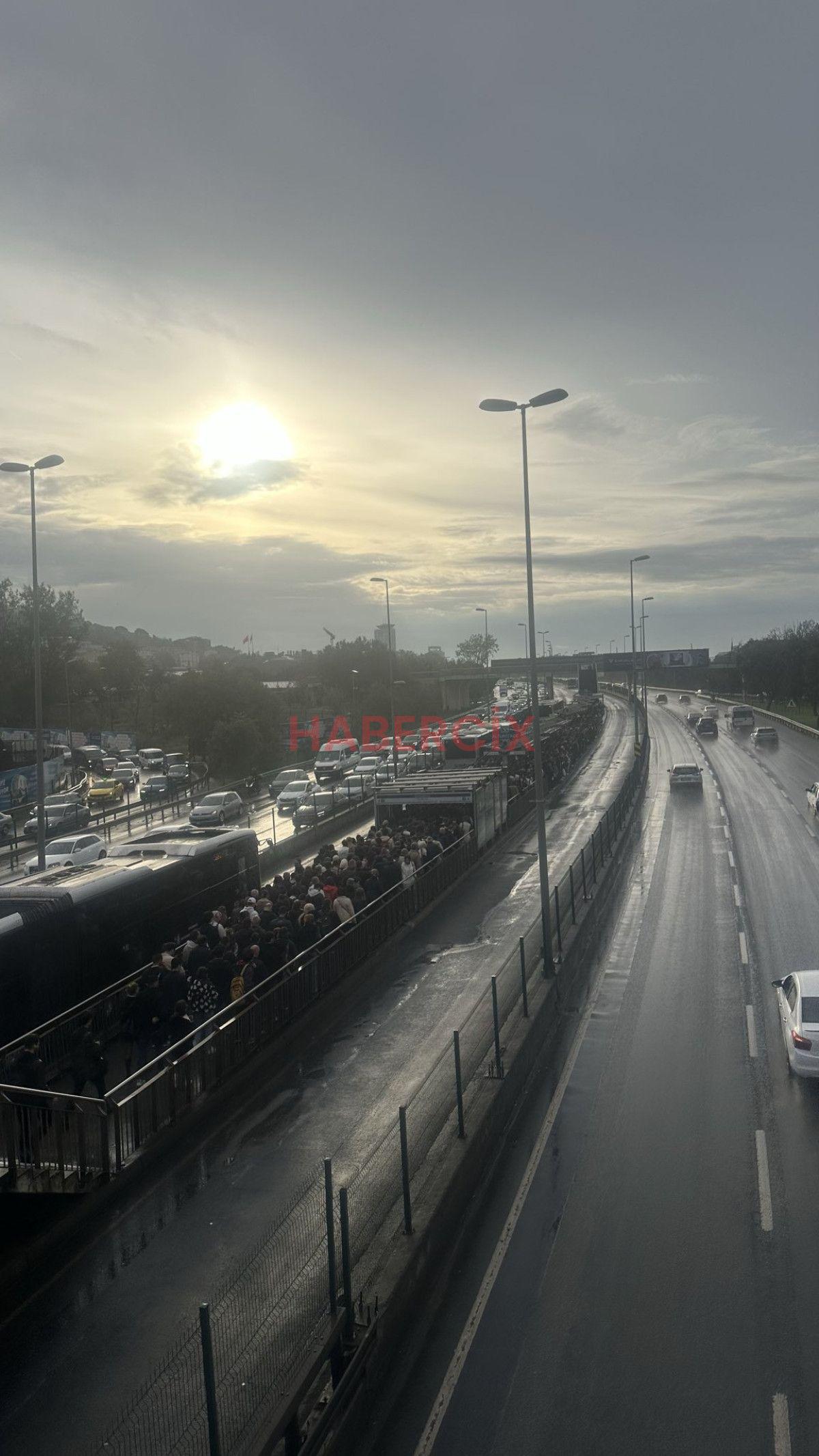 Sabah saatlerinde metrobüse binmek isteyen vatandaşlar, dakikalarca kuyrukta beklemek zorunda kaldı.