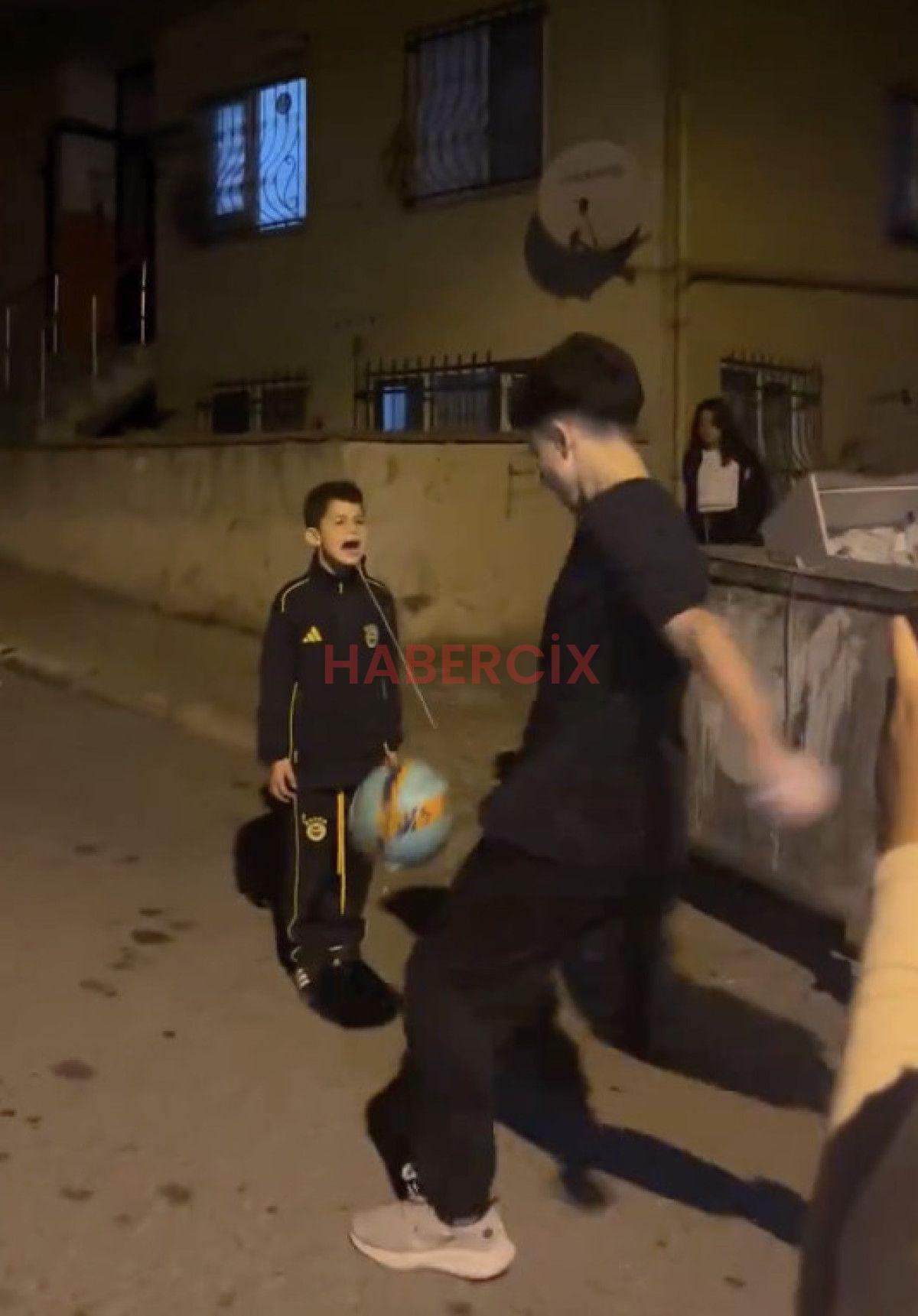 İpin bir öteki ucunu topa bağlayan çocuklar, akabinde topa şut çekip dişi düşürdüler.