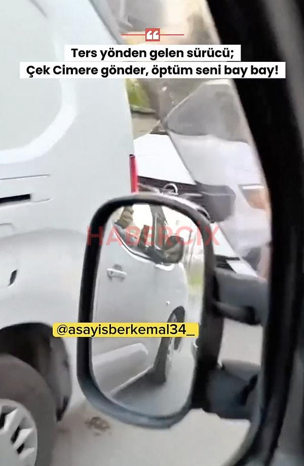 İstanbul Maltepe’de ters yönde giden iki sürücü, kendilerini görüntüleyen şahsa tepki gösterdi. ‘Sen ne ayaksın?’ diyen bir sürücü, karşısındaki şahsı kameraya çekti. Arkadan gelen diğer kişi ise ‘İstediğim yerden gelirim babanın yeri mi?’ diyerek kendisini çeken kişiye tepki gösterdi.