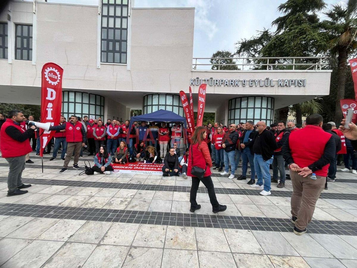 Açıklamanın ardından bir süre oturma eylemi yapan işçiler, daha sonra Kültürpark’ın 9 Eylül kapısına yürüyerek, oturma eylemine orada devam etti.
