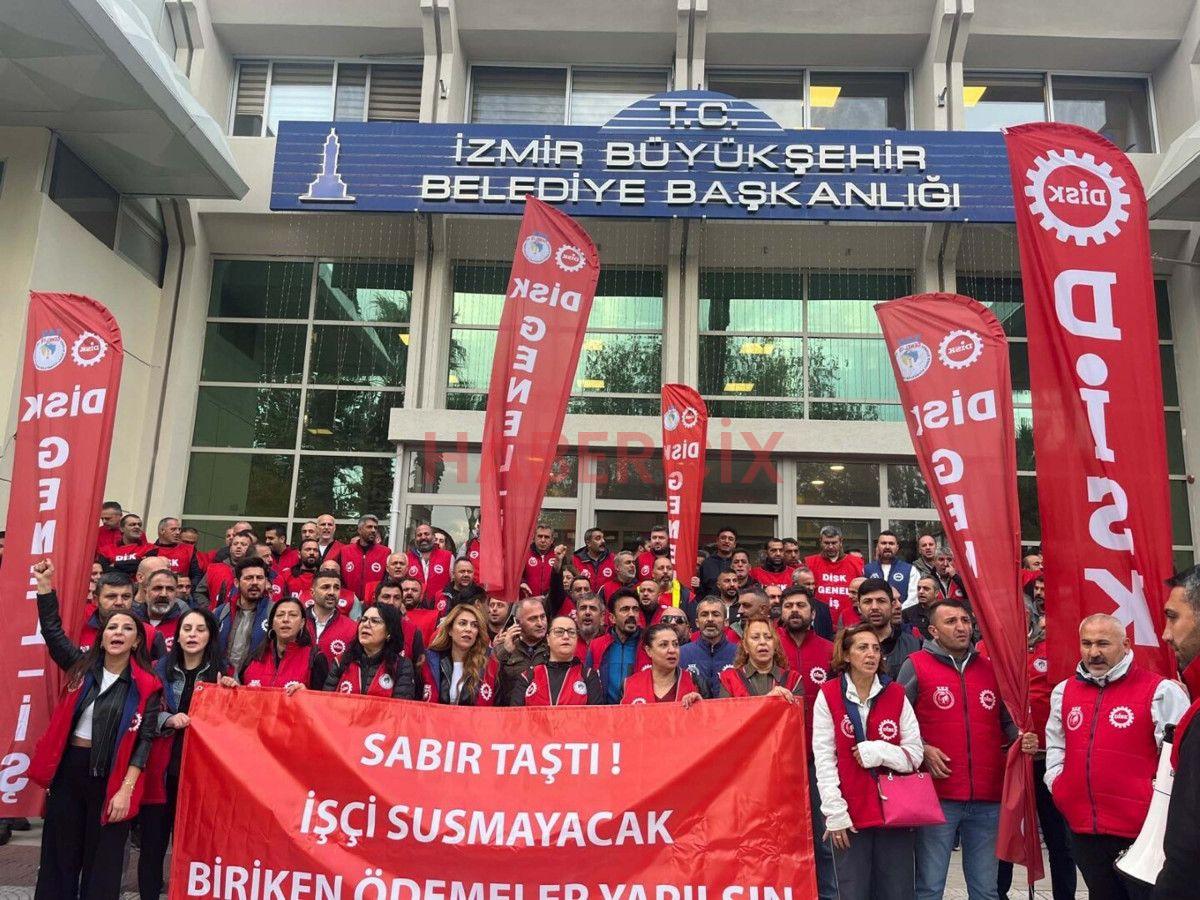 Büyükşehir Belediyesi bünyesinde bulunan İZENERJİ, İZELMAN VE İZFAŞ şirketlerinde örgütlü DİSK/Genel-İş İzmir 1-2-3-9 No’lu şube üyeleri, çalışanların 3 aydır sosyal haklarının ödenmemesi nedeniyle eylem kararı aldı.
