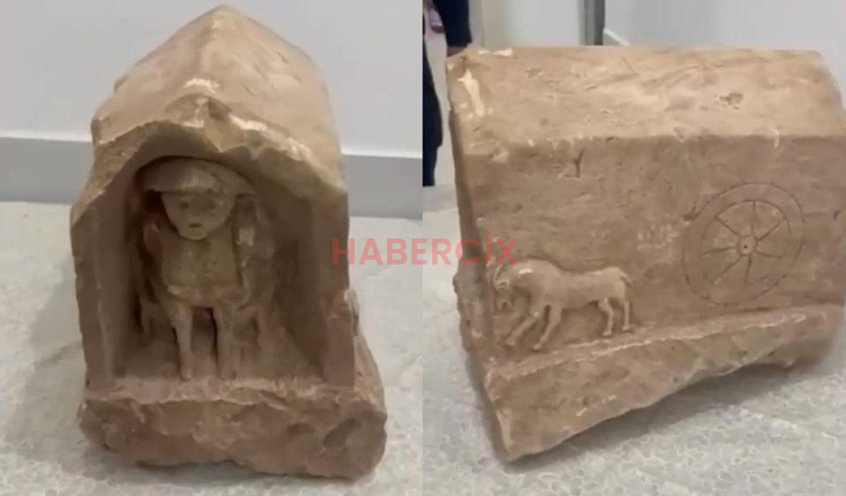 Anadolu Medeniyetler Müzesi uzman takımlarınca yapılan incelemede bir yüzünde insan, öteki yüzünde ise hayvan figürü bulunan stelin kireçtaşından yapıldığı ve Roma periyoduna ilişkin olduğu belirlendi.