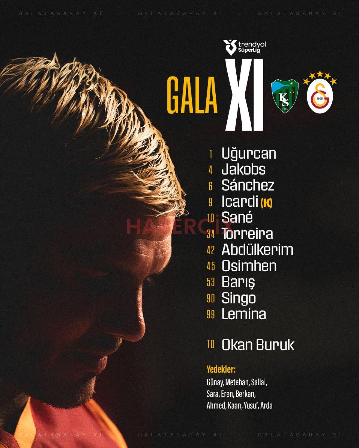 Kocaelispor – Galatasaray maçının ilk 11’leri