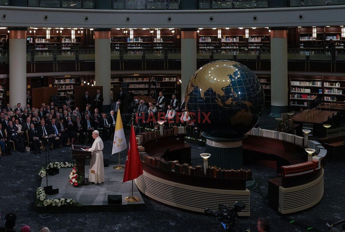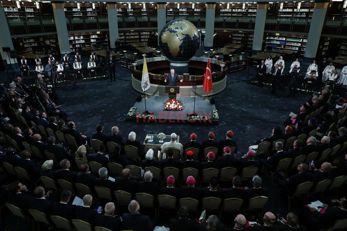 Heyetler ortası görüşmeden sonra Cumhurbaşkanı Erdoğan ve Papa 14. Leo, Cumhurbaşkanlığı Millet Kütüphanesinin Cihannüma Salonu’nda gerçekleştirilen Sivil Toplum ve Diplomatik Heyet Toplantısı’na katıldı.