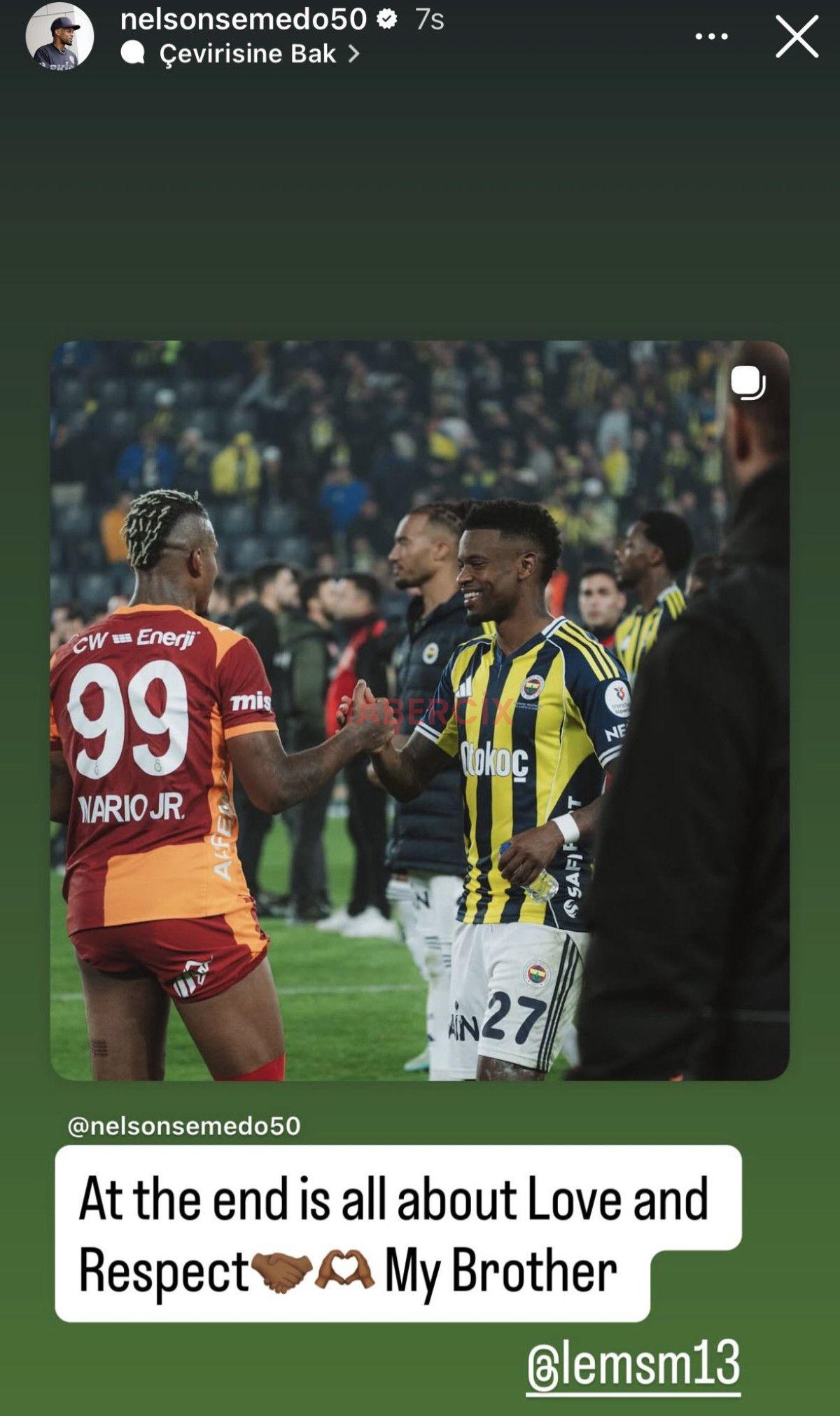 Fenerbahçe forması giyen Nelson Semedo ve Galatasaray forması giyen Mario Lemina, derbinin ardından paylaşımlarında dostluk mesajı verdi.