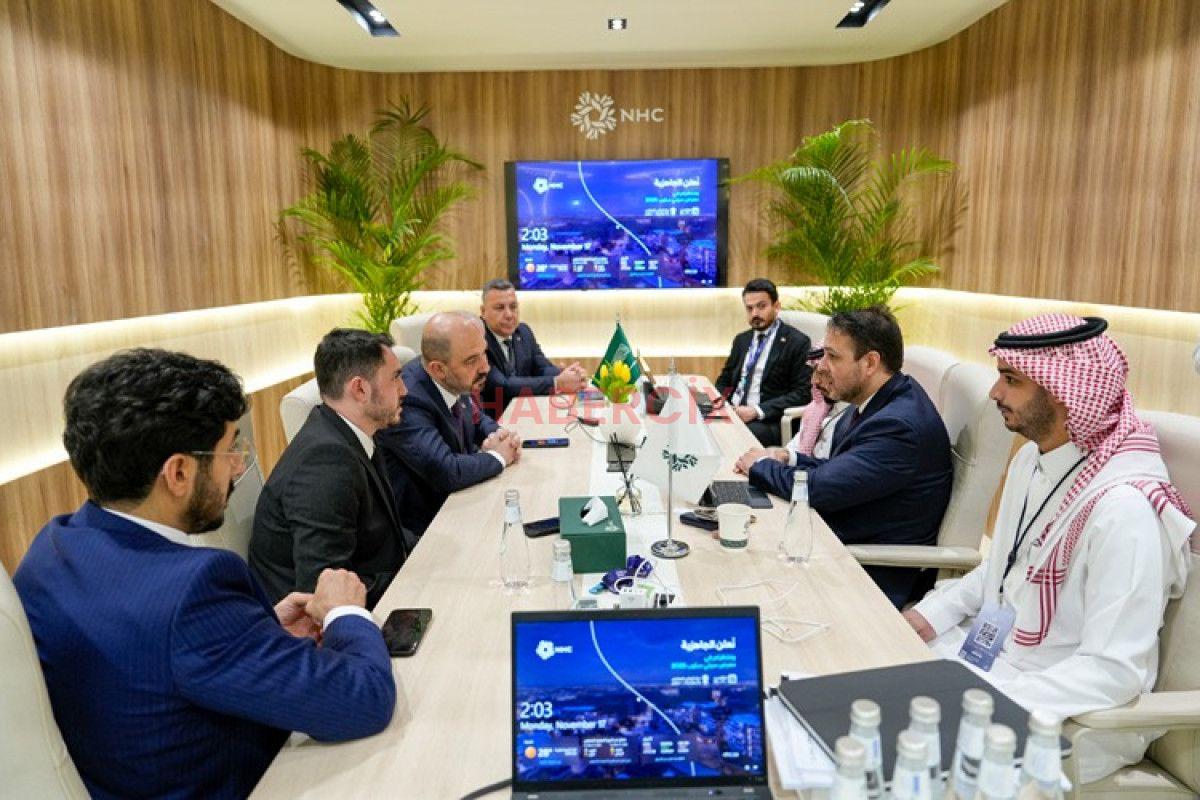 Cityscape Global Riyad 2025 Fuarı’nda düzenlenen imza törenine, Emlak Konut GYO Genel Müdürü Yasir Yılmaz, Suudi Arabistan Belediyeler ve Konut Bakanı Majid bin Abdullah Al-Huqail ve NHC Üst Yöneticisi (CEO) Mohammad Albuty katıldı.