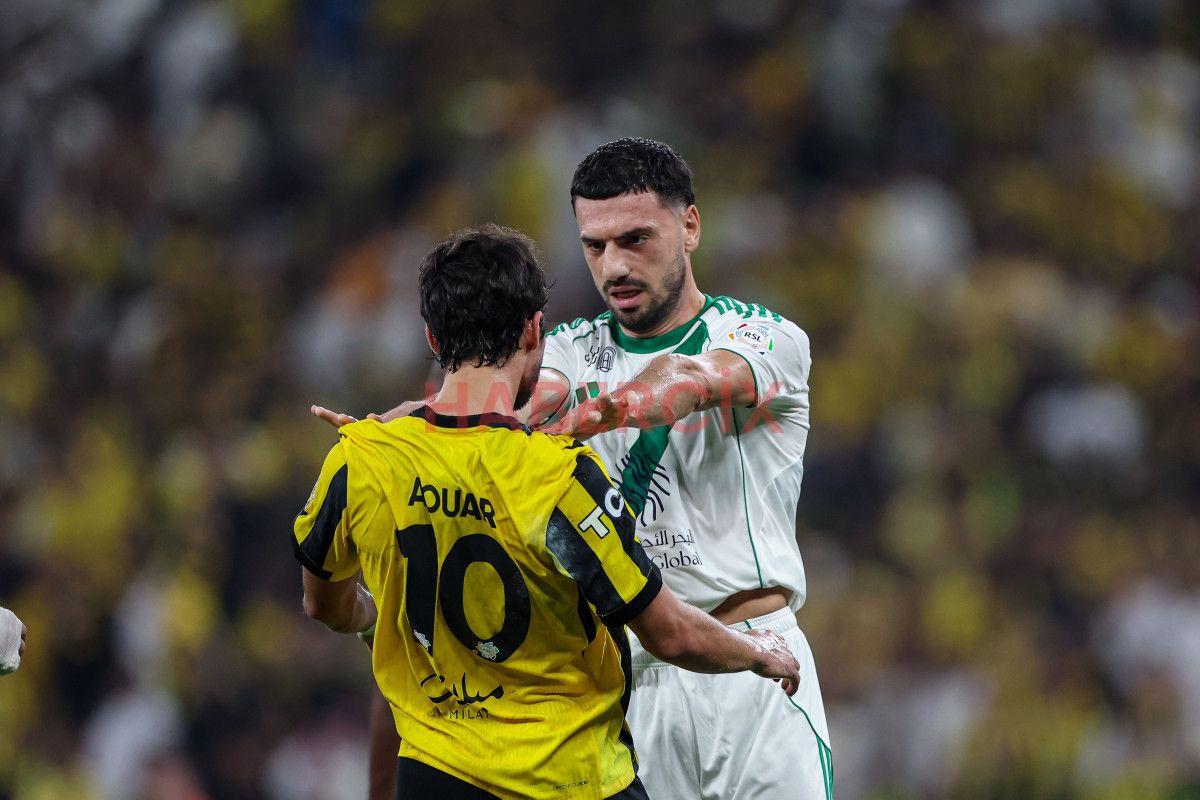 Karşılaşmanın 30. dakikasında Al-İttihad’ın Houssem Aouar ile gerçekleştirdiği atak sonrası Merih Demiral ile Aouar arasında tansiyon yükseldi.