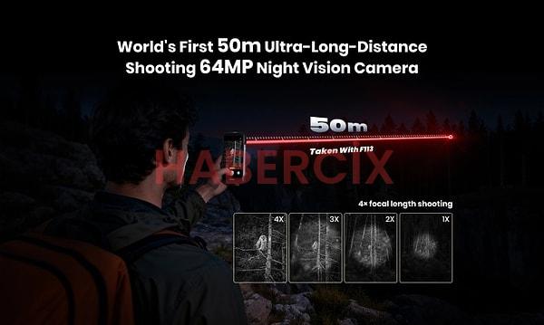 Kamera tarafında 50 MP ana kamera, 5 MP makro kamera ve 32 MP ön kameraya ek olarak, modelin en dikkat çekici bileşeni olan 64 MP kızılötesi gece görüş kamerası öne çıkıyor. Bu sensör, ortama ek bir IR kaynağı olmaksızın karanlıkta ayrıntılı görüntü kaydı yapılmasını sağlıyor. Arka bölümde bulunan 3 watt’lık kızılötesi ışık ise daha uzak mesafelerde görüş imkânı sunuyor.