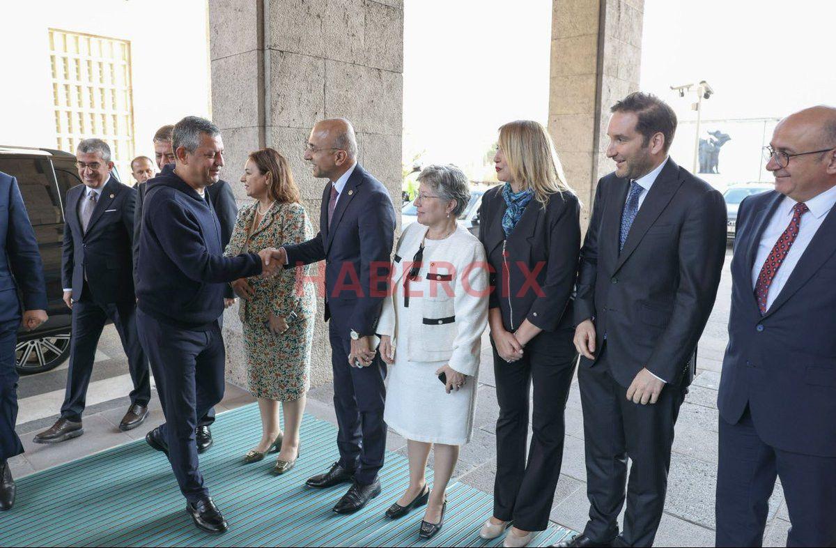 Spor kıyafetle kendisini karşılayanlarla tokalaşan Özel, ardından da makam odasına geçti.