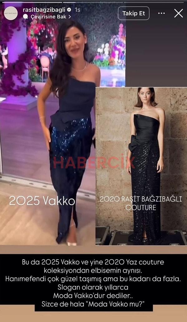 Bağzıbağlı, 2020 Yaz Couture koleksiyonundaki bazı elbiselerinin, Türkiye’nin önde gelen ünlü giyim markalarından birinin 2025 koleksiyonunda neredeyse birebir şekilde yeniden karşına çıktığını söyleyerek hem markaya hem de markanın stilistlerine sitem etti.