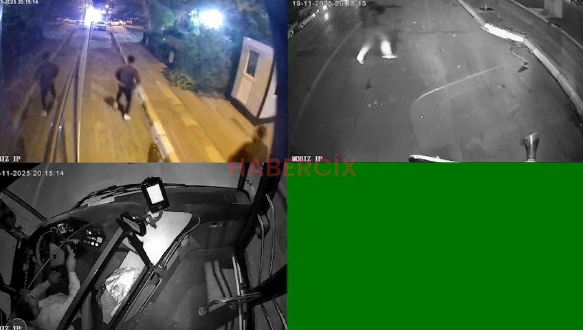 Halk otobüsünün kamerasına yansıyan imajlarda ise araç önünde birdenbire çıkan bir küme silahlı gencin karşılıklı çatışmaları ve seken saçmanın araç camına isabet etmesiyle yolcular endişeye kapılıp çığlık atmaları yer aldı.