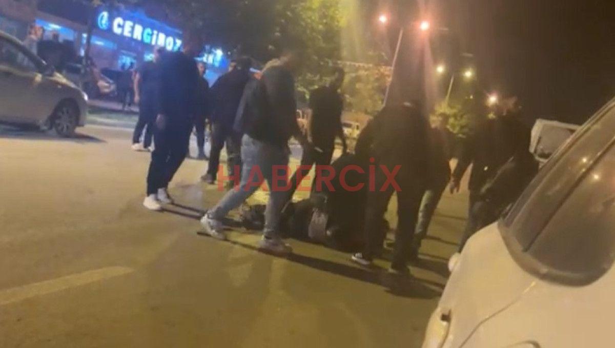 Kavga anı, etraftaki bir vatandaş tarafından cep telefonu kamerasıyla kayda alındı.