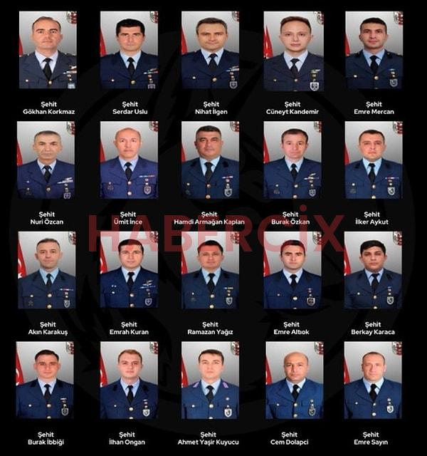 MSB, uçakta bulunan 20 askeri çalışanımızın şehit olduğunu duyurarak kimliklerini açıkladı.