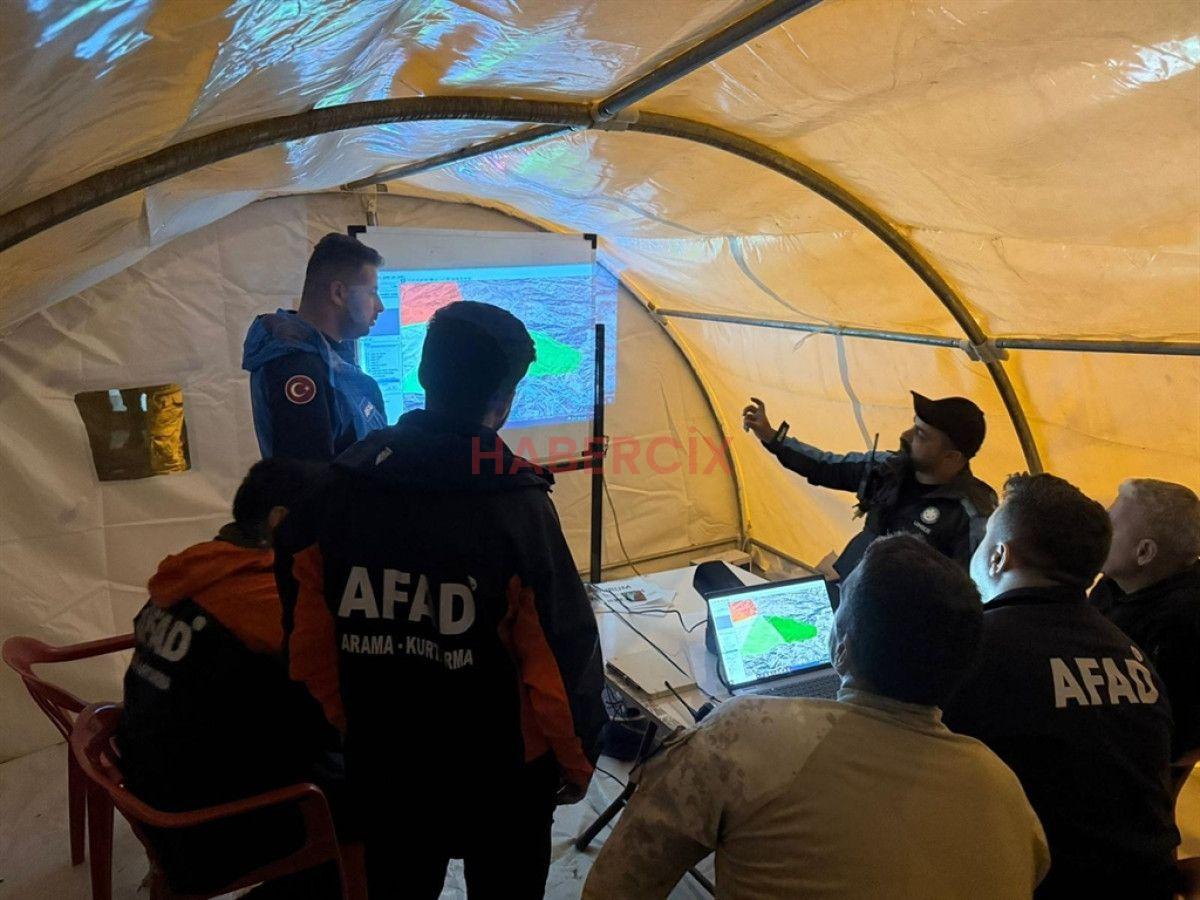Aramalarda iz takip köpeği, AFAD Genel Merkezi’nden gönderilen insansız termal hava aracı ve zırhlı araç gözetleme sistemleri kullanıldı.