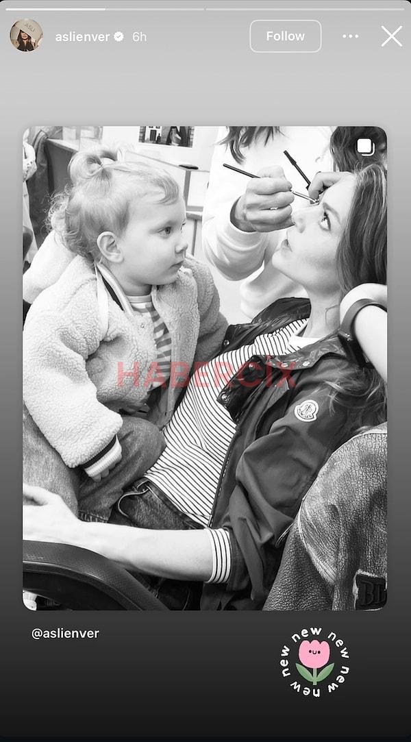 Aslı Enver, Berkin Gökbudak’la kurduğu sakin aile hayatını artık setlere de taşıyanlardan. Son hikâyesinde makyaj koltuğunda rolüne hazırlanırken kucağında onu dikkatle izleyen kızı Elay var. Bir yanda yeni projeyle set temposu, diğer yanda annesinin yüzündeki her fırça darbesini merakla takip eden minik bir seyirci…
