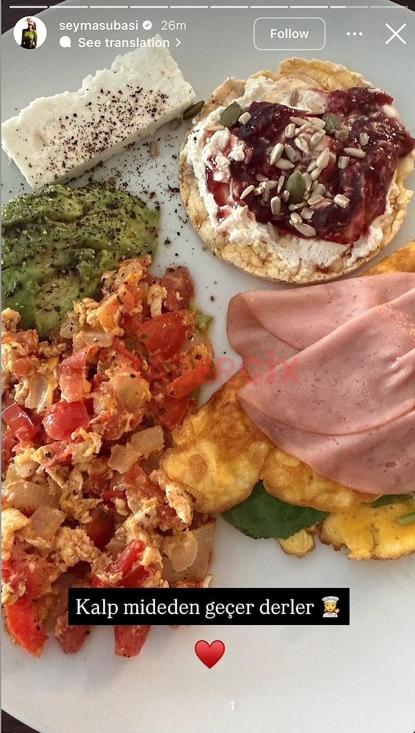 Son dönemde özel hayatı kadar “sağlıklı yaşam” paylaşımlarıyla da gündemde olan Şeyma Subaşı, avokadolu, peynirli, omletli kocaman kahvaltı tabağının üzerine “Kalp mideden geçer derler” yazılı notuyla kalp emojisi kondurdu.