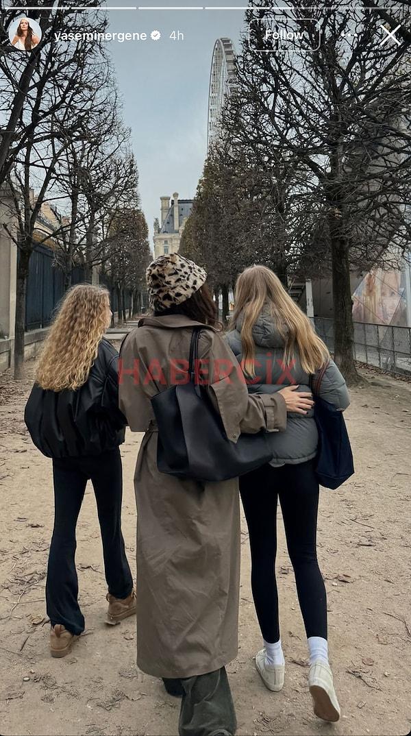 Yasemin Ergene, neredeyse boyuna yetişen kızları Emine ve Ela ile yapraklarını dökmüş ağaçların altında yürürken tam bir ‘anne-kızlar Avrupa kaçamağı’ pozu verdi.