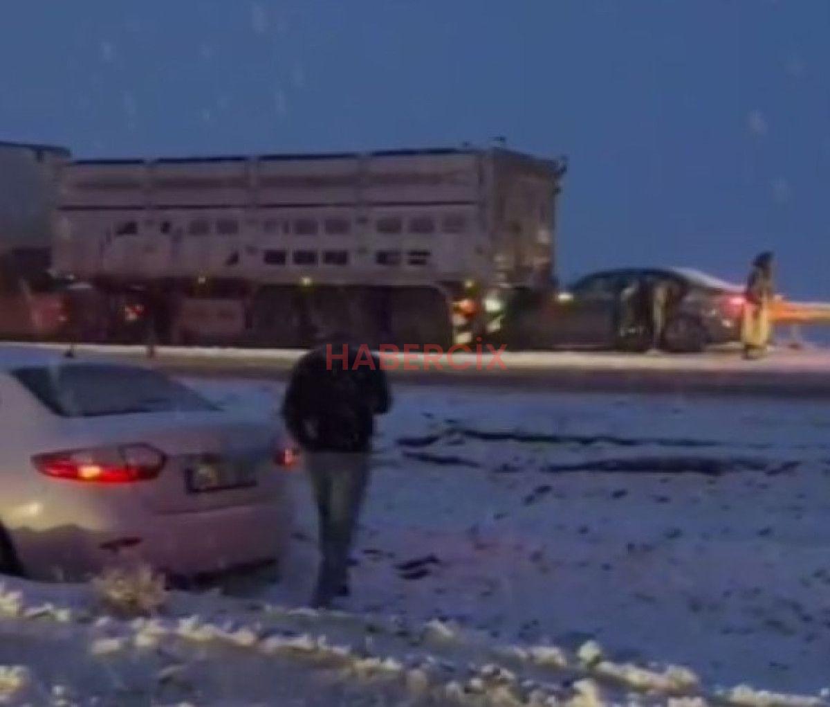 Sivas’ta gün boyu etkili olan kar ve tipi, akşam saatlerinde zincirleme bir trafik kazasına yol açtı. Gürün yol ayrımında meydana gelen kazada, M.Ç. idaresindeki 34 FFM 260 plakalı tır sürücüsünün direksiyon hakimiyetini kaybetmesi sonucu makaslama yaptı.