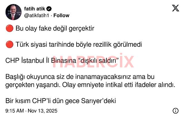 Fatih Atik’in X hesabından paylaştığı iddianın tamamı şöyle: