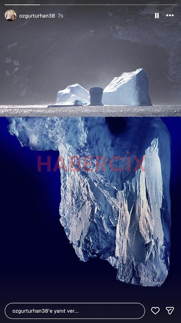 Özgür Turhan’ın birkaç saat evvel Instagram’da paylaştığı buz dağının görünen tarafı fotoğrafı ise epeyce manidar.