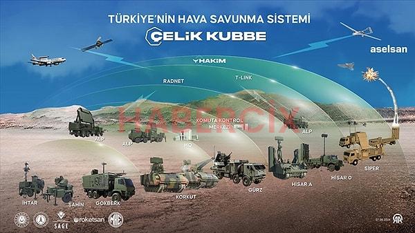 Çelik Kubbe, KORKUT, HİSAR-A+, GÖKDEMİR, C-RAM, GÖKER, GÖKBERK, HİSAR-O+, HERİKSS, ŞAHİN, İHTAR ve SİPER gibi hava savunma sistemlerinin birbirlerine entegre bir şekilde çalışmasını sağlayan yapay zeka destekli bir üst sistemdir.