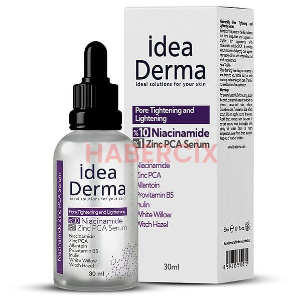 Niacinamide ve çinko içeriği cildin daha parlak olmasına ön ayak oluyor. Gözeneklerin de tıkanmasını önleyip sıkılaşmasına yardımcı olan İdea Derma, cildin daha aydınlık bir görünüm kazanmasını sağlıyor. Durulama gerektirmiyor.