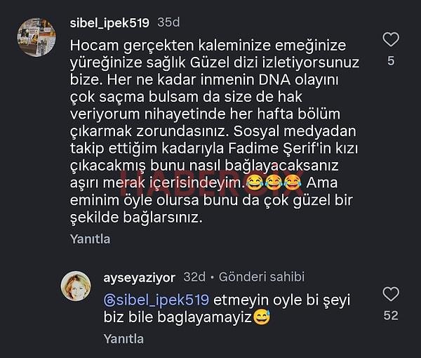 Fadime Koçari’nin dizinin makus karakteri Şerif’in kızı olduğuna dair teoriler görenleri şoke ederken bir seyirci, bu mevzuyu senariste sordu.