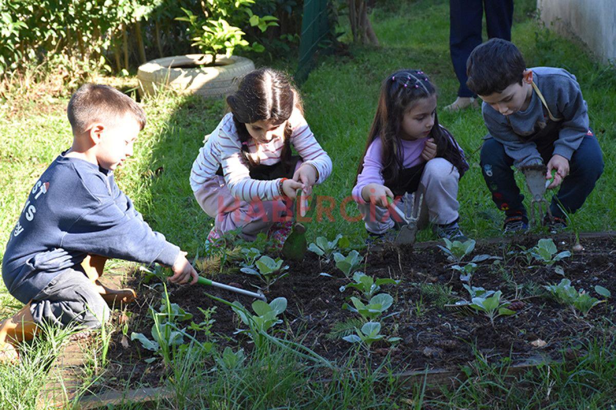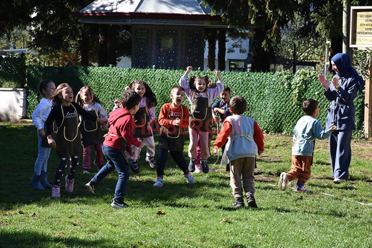 Minik Kalpler Anaokulu’nun 25 öğrencisi de merkeze gelerek taş değirmende mısır unu yapımı, bahçede fide dikimi, odun kesme ve atölye çalışmaları gibi pek çok etkinliği deneyimledi.