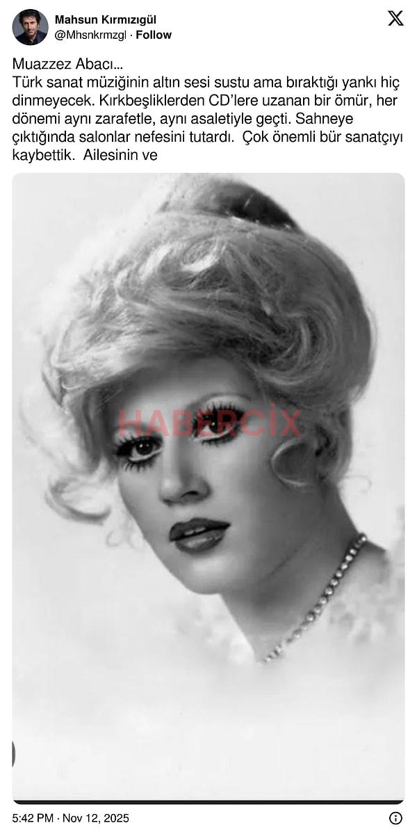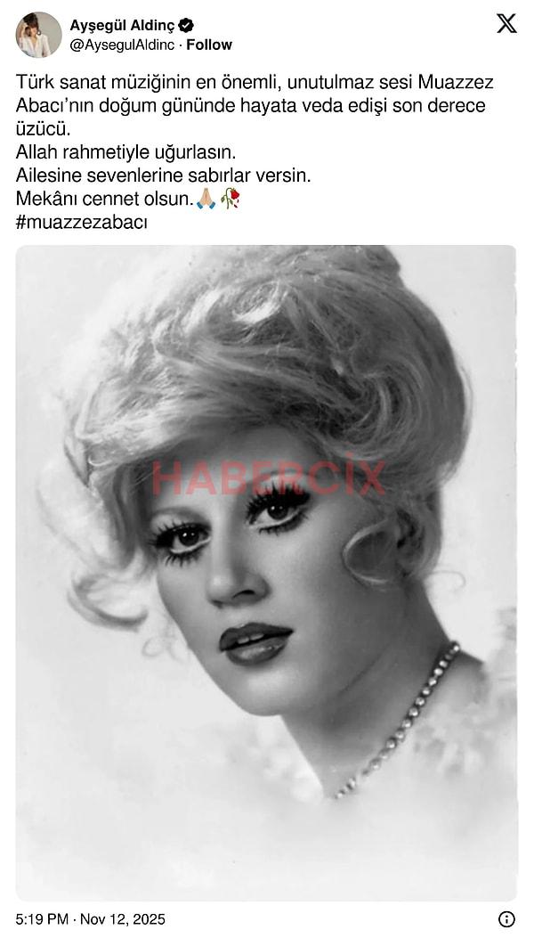 Birkaç saat evvel acı haberi menajeri verdi. En son nefes almakta zahmet çektiği belirtilen Muazzez Abacı, bugün, 78 yaşında, doğum gününde hayatını kaybetti.
