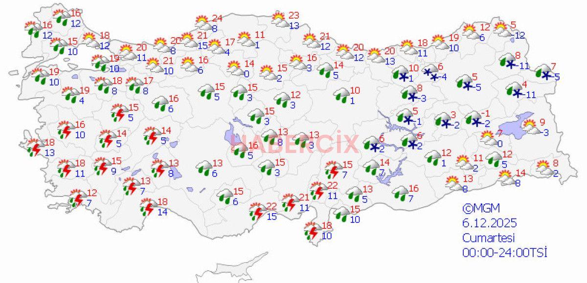 Özellikle Marmara, Ege, Karadeniz ve Doğu Anadolu bölgelerinde sağanak yağışlar, yer yer gök gürültüsü ve kar yağışı öngörülüyor.