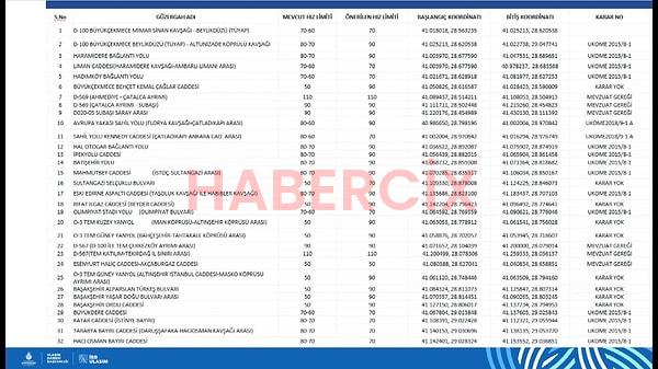 İstanbul Büyükşehir Belediyesi (İBB) Ulaşım Koordinasyon Merkezi (UKOME) bu ay yapılan toplantısında kritik kararlar alındı. Avrupa Yakası’nda 57 noktada, Anadolu Yakası’nda da 27 güzergahta olmak üzere toplam 84 güzergahta hız sınırları değişti. Yeni alınan karar kapsamında toplam 14 bin 655 levhanın da sökümüne başlanacak. Çalışmalar bu yılını sonuna kadar tamamlanacak.