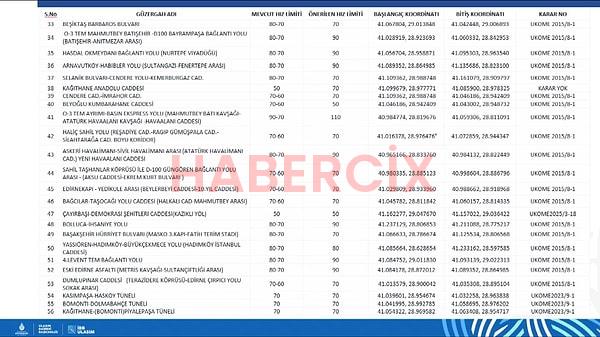 İşte İstanbul’da hız limiti değişen tüm yerlerin sıralı listesi… 👇